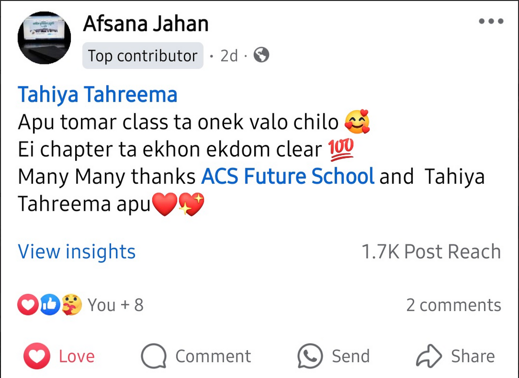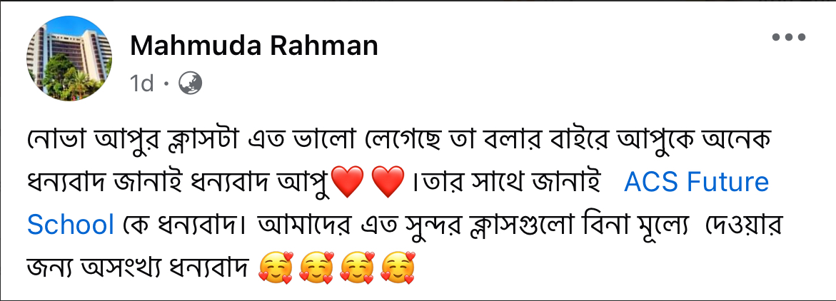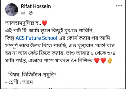 স্বত্ব © ২০২৪ ACS Future School কর্তৃক সর্বস্বত্ব সংরক্ষিত
